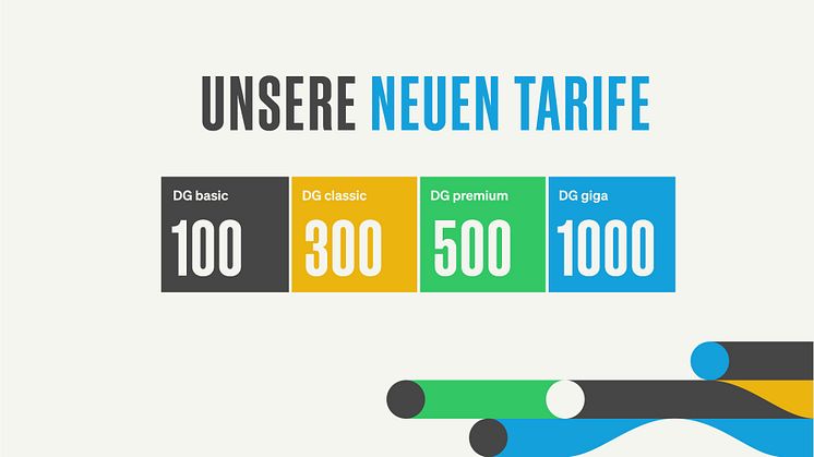 Ab sofort stehen allen Neukunden von Deutsche Glasfaser die neuen Tarife „DG basic 100“, „DG classic 300“, „DG premium 500“ und „DG giga 1000“ zur Verfügung