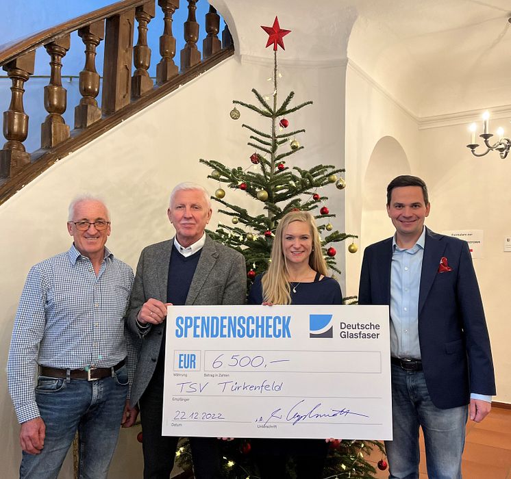 Mit 6.500 Euro unterstützt die Deutsche Glasfaser den TSV Türkenfeld e.V. beim schrittweisen barrierefreien Ausbau des Sportgeländes. „Ich freue mich, dass hier eine Kooperation zustande gekommen ist“, so Bürgermeister Emanuel Staffler im Rahmen der Scheckübergabe im Türkenfelder Schloss am 22.12.2022 (Donnerstag). „Der Sportverein ist mit über 1.200 Mitgliedern eine der tragenden Säulen unserer Dorfgemeinschaft und leistet wertvolle Arbeit im Bereich der Kinder- und Jugendarbeit“, so der Rathauschef weiter. Mit der Spende von Deutsche Glasfaser sollen die Asphaltierungsarbeiten des insgesamt 1.300 Quadratmeter großen Mitglieder-Parkplatzes bezahlt werden.