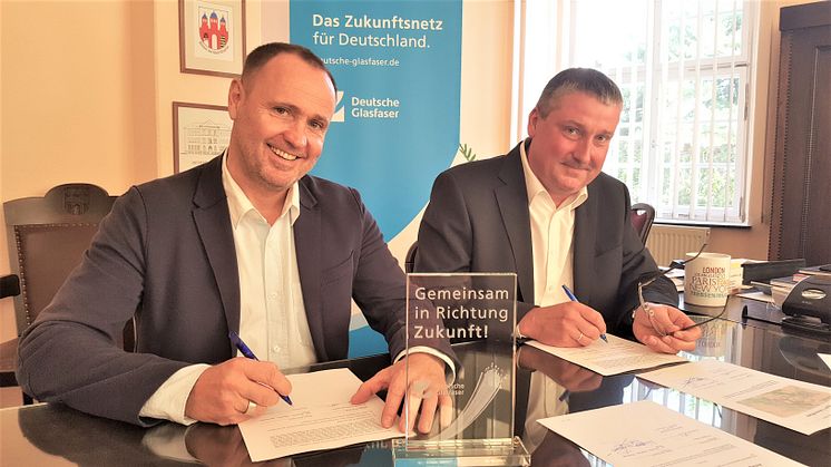 Im Juni dieses Jahres sprach sich der Stadtrat für den FttH-Ausbau (Fibre to the Home) aus. Heute nun unterzeichnete Bürgermeister Stefan Müller den Kooperationsvertrag mit Deutsche Glasfaser. Dieser sieht vor, die Stadt und die Ortsteile sukzessive mit Glasfaserleitungen und Hausanschlüssen zu versorgen, sodass die angeschlossenen Haushalte anschließend Geschwindigkeiten von 200, 400 und 600 Mbit/s sowie 1 Gbit/s nutzen können. Der an sich ab 750,00 Euro teure Glasfaser-Hausanschluss wird kostenlos in jedes Haus gebaut, wenn während der Nachfragebündelung die 40 Prozent Zustimmung erreicht werden.